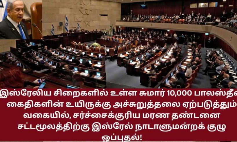 இஸ்ரேலிய சிறைகளில் உள்ள சுமார் 10,000 பாலஸ்தீன கைதிகளின் உயிருக்கு அச்சுறுத்தலை ஏற்படுத்தும் வகையில், சர்ச்சைக்குரிய மரண தண்டனை சட்டமூலத்திற்கு (Death Penalty Bill) இஸ்ரேலிய நாடாளுமன்றத்தின் (Knesset) தேசிய பாதுகாப்பு குழு கடந்த நேற்று செவ்வாய்க்கிழமை (2026 -03.24) ஒப்புதல் அளித்துள்ளது.
